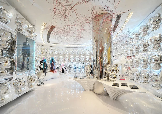 DURING THE 2011 NY FASHION WEEK, GAGE/CLEMENCEAU ARCHITECTS PARTNERED WITH FASHION DESIGNER NICOLA FORMICHETTI TO CREATE A VISIONARY RETAIL EXPERIENCE. THE SPACE, DESCRIBED AS THE SHATTERED ENTRAILS OF A DISCO BALL, SET THE STAGE FOR A RAPID EXPANSION IN TO ASIA AND THE EMERGENCE OF NICOLA AS A GLOBAL FASHION INFLUENCE. THE PARTNERSHIP WITH LANE CRAWFORD WAS ONE OF THE MOST SUCCESSFUL PARTNERSHIPS IN THE BRAND’S HISTORY AND THE SPACES WERE FANTASTIC EXPERIENCES IN THEIR OWN RIGHT.